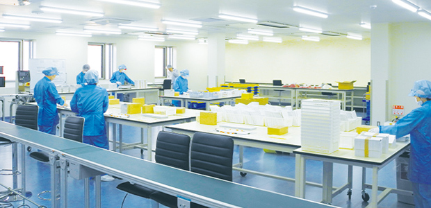 自社工場内に高清浄度のクリーンルームを設置し、ハイレベルな品質管理が可能に。商品価値に関わる見た目の美しさにもこだわったアッセンブリ(セット作業)を行い、低コスト・高品質を実現しています。